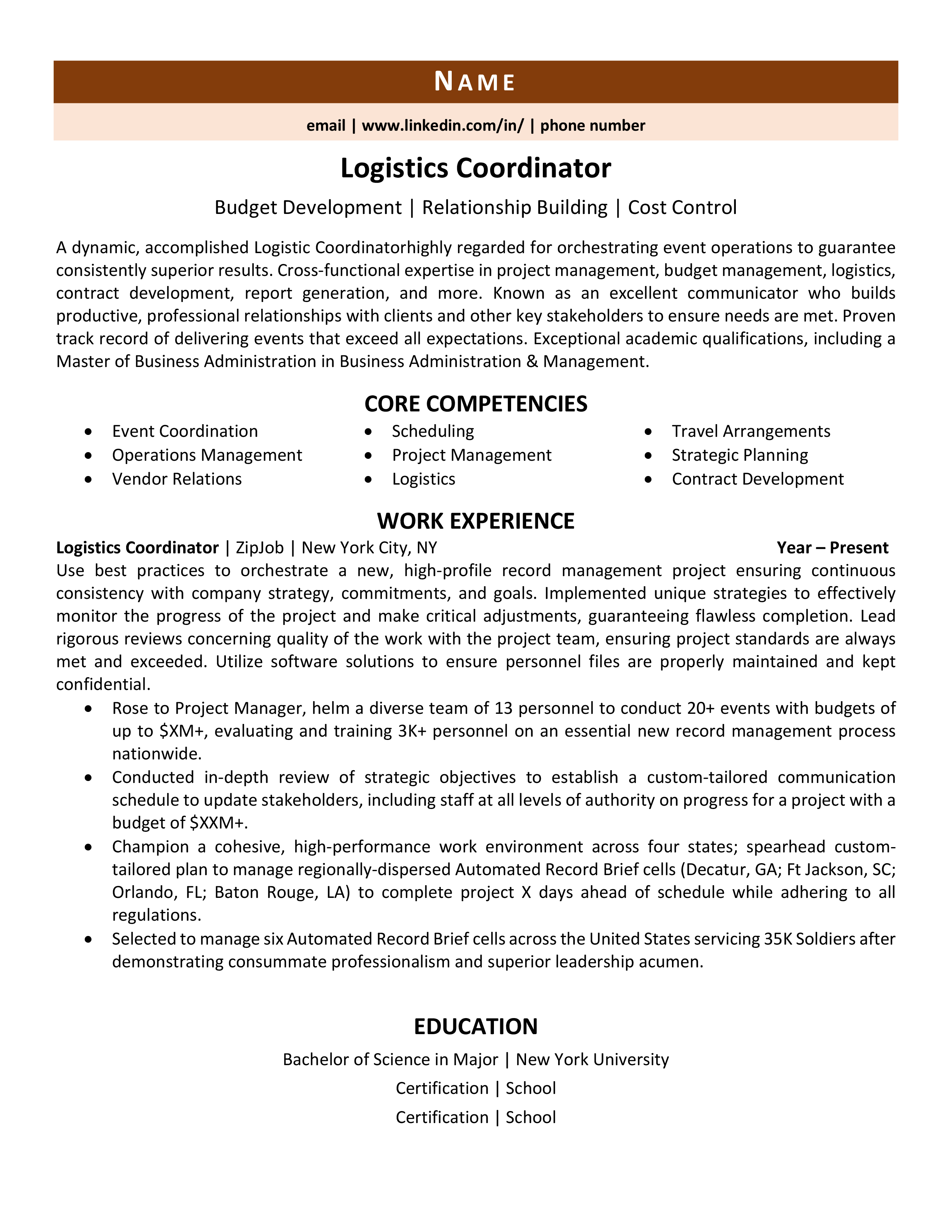 Logistics Coordinator Resume In Word Format - Logistics Coordinator Resume Examples 2021 Template And Tips Zippia : Clinical research coordinator resume examples & samples education:. Use indeed library of free administrative resume examples and templates. A resume summary is a short section at the top of your resume showcasing your best traits and accomplishments. Organizing meetings, providing support to executives, taking part in recruitment processes, generating reports for managers. Before you begin writing your resume, make sure the event planner resume template is formatted to perfection. Coordinator resume examples coordinators are found in a variety of work environments and are in charge for managing daily operations and organizing staff.